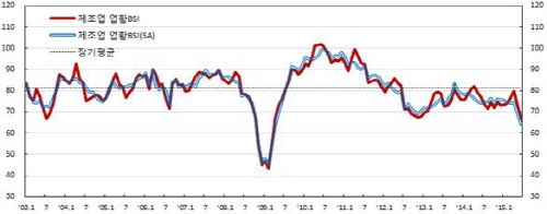 BSI는 기업이 느끼는 경기 상황을 지수화한 것으로 지수가 100을 밑돌면 경기를 나쁘게 보는 기업이 좋게 보는 기업보다 많다는 뜻이고 100을 넘으면 그 반대를 의미한다.