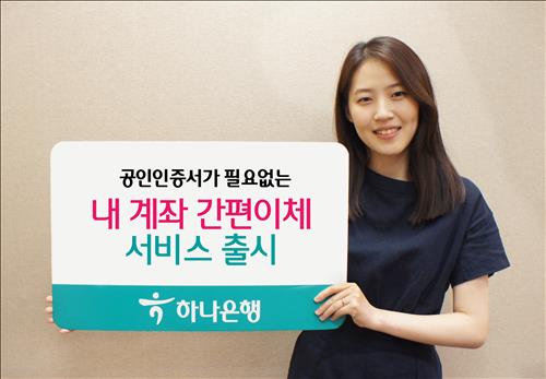 하나은행은 은행권 최초로 공인인증서 없이 이체할 수 있는 '내 계좌 간편이체' 서비스를 시행한다고 2일 밝혔다.