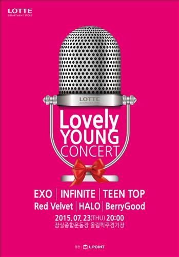 롯데에 따르면 이번 '러블리 영 콘서트(Lovely Young Concert)'에서는 엑소, 인피니트, 레드벨벳, 틴탑), 헤일로, 베리굿 등 인기 아이돌 그룹 여섯 팀이 공연할 예정이다.콘서트 좌석 티켓은 사은 행사와 프로모션을 통해 증정된다.