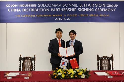 코오롱인더스트리 FnC부문은 20일 서울 강남사옥에서 중국 패션 그룹 하선과 조인식을 갖고 ‘슈콤마보니’ 중국 내 독점 판매권 계약을 체결했다고 밝혔다.