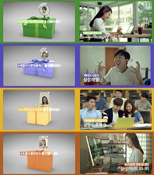 이번에 공개된 영상은 대학생, 사회 초년생 등 젊은 세대라면 누구나 공감할만한 에피소드들을 소재로 삼성전자의 갤럭시 탭 S2ㆍ레벨 Uㆍ노트북9 Liteㆍ커브드 모니터 4가지 제품과 함께 기프티툰 방식으로 제작됐다.