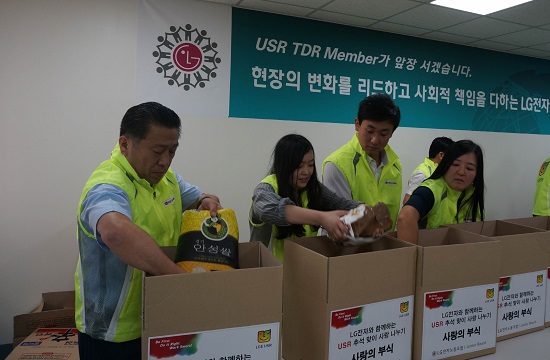 LG전자 노동조합은 노조의 사회적 책임(USR) 활동의 하나로 18일까지 독거노인, 조손 가정 등 250여 가구에 쌀, 김, 밀가루, 통조림, 식용유 등 10여 가지 생필품을 담은 ‘사랑의 부식 박스’를 전달한다고 15일 밝혔다.