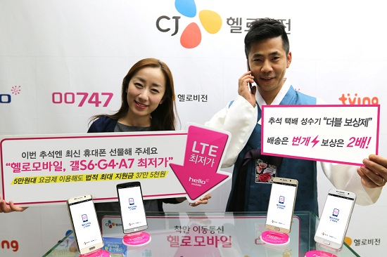 CJ헬로비전(대표 김진석)은 추석을 맞아 알뜰폰(MVNO) 브랜드 헬로모바일에서 최신 휴대폰 3종을 법적 최저가로 제공하는 이벤트를 진행한다고 16일 밝혔다.