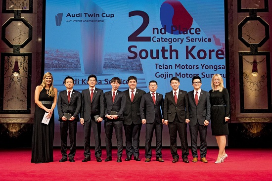 아우디 코리아는 최근 오스트리아 비엔나 호프부르크 궁전에서 열린 애프터세일즈(A/S) 서비스 월드 챔피언십 2015 아우디 트윈컵에서 한국팀이 서비스 부문 2위를 차지했다고 19일 밝혔다.