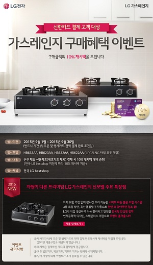 LG전자는 추석과 혼수준비시즌을 맞아 주방 필수품 가스레인지 구매 시 결제금액의 10%를 캐시백으로 돌려주는 이벤트를 진행한다고 21일 밝혔다.