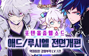 넥슨(대표 박지원)은 24일 KOG(대표 이종원)가 개발하고 자사가 서비스하는 스타일리쉬 액션 RPG ‘엘소드(Elsword)’의 주요 캐릭터 ‘애드’와 ‘루시엘’을 개편했다.