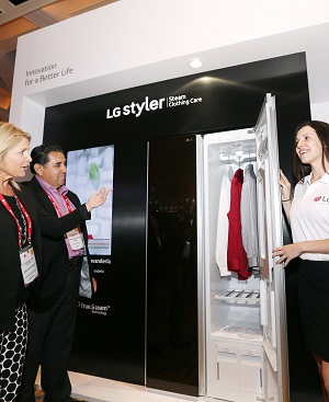 이밖에 ▲냉기 손실을 절반으로 줄여주는 매직스페이스를 양쪽 문에 적용한 더블 매직스페이스 냉장고 ▲오븐, 쿡탑, 식기세척기, 냉장고 등으로 구성된 프리미엄 빌트인 패키지 L! G 스튜디오 ▲선을 없애 편의성을 극대화한 코드제로 청소기 ▲의류 등을 항상 깔끔하게 관리해주는 의류관리기 스타일러 ▲스마트 기능이 없는 일반 가전제품을 스마트 가전으로 바꿔주는 스마트씽큐 센서(SmartThinQTM Sensor) 등 올해 주요 전략제품들이 총출동했다.