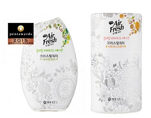 애경에스티(대표이사 고광현) ‘홈즈 에어후레쉬 크리스탈워터 컬러링 리미티드 에디션’이 국제 패키지부문 최고 권위의 디자인공모전인 ‘펜타워즈(Pentawards) 2015’에서 가정생활용품부문 브론즈 어워드(Bronze Award)를 수상했다고 29일 밝혔다.
