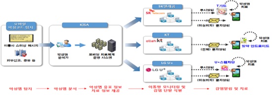 이에 미래창조과학부는 KISA, 이통3사와 협력하여 악성앱에 감염된 스마트폰을 식별하여 치료를 안내하는 ‘모바일 응급 사이버 치료체계’ 구축을 추진해왔다. ,
