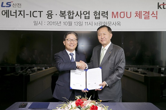 KT는 13일 오전 KT 광화문 East(이스트) 사옥에서 LS산전과 ‘에너지 ICT(정보통신기술) 융·복합 사업협력 양해각서(MOU)’를 체결했다.