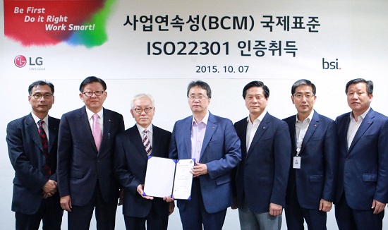LG전자는 지난 6월부터 비즈니스연속성경영시스템 구축 태스크를 시작했다. 국제인증기관 ‘BSI’를 통해 현장심사와 모의훈련 등 인증심사를 거쳐 최종 ‘ISO22301’ 인증을 획득했다.