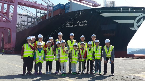 한진해운 부산 신항만 터미널과 운항훈련원을 찾아 한국 해운산업의 역사와 선박의 주요 구성품인 통신 및 기관장비 등의 기능과 작동 원리를 배웠다.