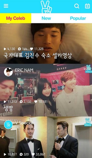 주원, 박보영, 이준기, 이종석 등 대규모 해외 팬들을 보유한 스타 배우들이 채널을 생성해 틈틈이 팬들과의 소통에 V를 활용하고 있다. 이외에도 김수현, 김태희, 서강준 등 다양한 배우들이 V에 깜짝 등장해 V이용자들을 즐겁게 만들었다.