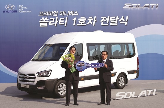국내에서 처음으로 선보이는 현대자동차 프리미엄 미니버스 ‘쏠라티’의 본격 출고를 알리는 1호차 전달식이 진행됐다.