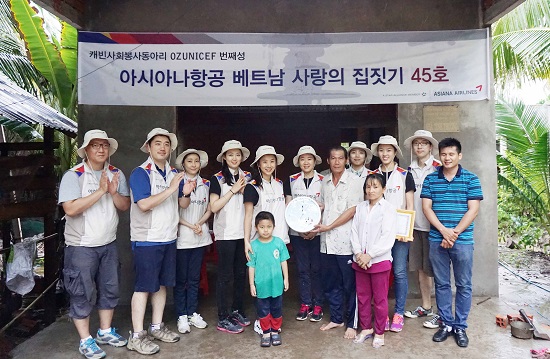 베트남 ‘사랑의 집 짓기’ 활동은 아시아나가 진행하는 글로벌 사회공헌 활동 중의 하나로 이달 22일, 베트남 번째성(Ben Tre 省)에 45번째 「사랑의 집」을 준공했다. 공사 기간은 약 3개월이 소요되었으며 마을 주민들과 ‘오즈 유니세프’ 회원들의 협업으로 이뤄졌다.