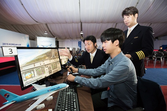대한항공은 25일 서울 에어쇼가 열리는 경기도 성남시 서울공항에서 가상 공간 속 항공기 조종 실력을 겨루는 ‘2015 대한항공 플라이트 시뮬레이션 콘테스트’를 개최했다고 밝혔다.
