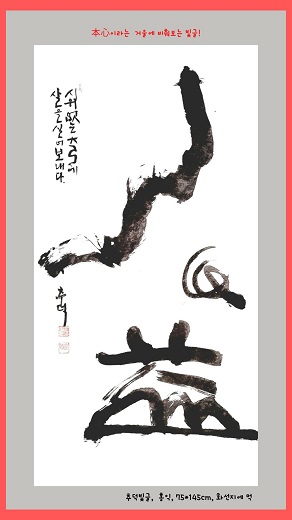 붓에 氣Energy가 집중되면 한 겹 한 겹 허물이 벗겨져 나가고, 맑은 거울을 앞에 두고 춤추듯 저절로 움직여지는 붓흐름 따라 기존의 書法에 없는 無爲붓글을 써왔다.