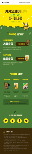 카카오톡 선물하기와 카카오픽에서 카카오페이로 처음 결제한 이용자에게는 결제금액에 관계없이 5000 카카오포인트를 추가 적립해준다.