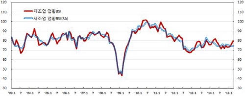 BSI는 기업이 느끼는 경기 상황을 지수화한 것으로 지수가 100을 밑돌면 경기를 나쁘게 보는 기업이 좋게 보는 기업보다 많다는 뜻이고 100을 넘으면 그 반대를 의미한다.