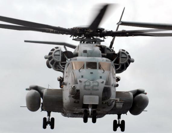 '스탤리온'이라 불리는 CH-53 헬기는 미국 시콜스키사가 제작한 대형 헬기로 장거리 침투 병력 및 중량물 수송, 기뢰 탐지와 제거 등에 주로 사용된다.