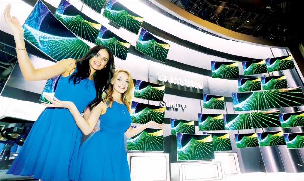 삼성전자 전시장 전면의 하이라이트 존에는 88인치형 SUHD TV와 유명 산업디자이너 이브 베하가 디자인한 세계 최고 수준의 화질을 갖춘 82인치형 S9W가 화려한 영상으로 관람객들을 맞이한다.