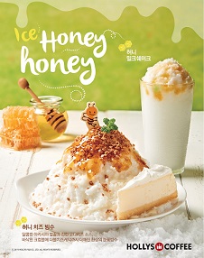 커피전문점 할리스커피는 2일 우유 얼음 위에 100% 국산 아카시아 꿀과 더블치즈케익을 올린 '허니치즈빙수'(1만1천500원)를 출시했다고 밝혔다.