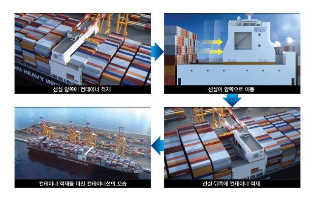 초대형 컨테이너선 선실이 레일을 따라 움직이는 개념으로 공간 활용도를 높여 화물적재량을 크게 늘린 것이 장점이다.