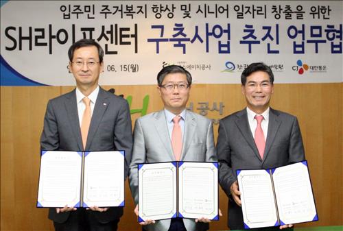 CJ대한통운은 SH공사·한국노인인력개발원과 'SH라이프센터 구축사업 추진 업무협약(MOU)'을 맺었다고 15일 밝혔다.