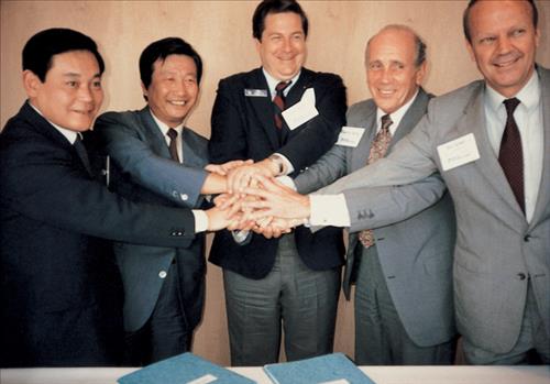 1985년 6월 이건희 삼성그룹 회장(당시 부회장)과 UTC그룹(P&W최대주주) 그레이 회장이 참석한 가운데 파리에어쇼 현장에서 PW4000 엔진 국제공동개발사업(RSP)에 대한 양사간 협력 합의가 이루어졌다
