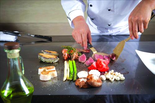 호텔 셰프가 고객이 원하는 신선한 식재료를 이용, 즉석에서 조리해주기 때문에 뛰어난 풍미를 느낄 수 있을 뿐만 아니라 볼거리까지 제공한다.