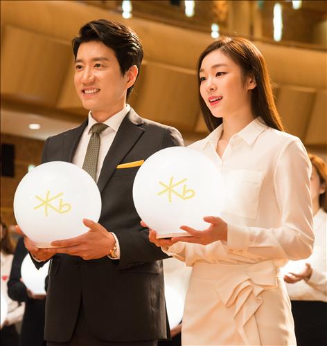 22일 관련 업계에 따르면 이 광고는 LIG손보의 대표 모델인 배우 김명민과 KB금융의 모델인 피겨여왕 김연아가 만나 한가족이 된다는 내용을 담았다.