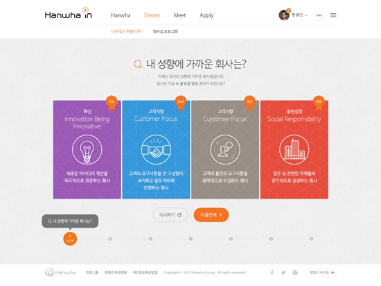 ‘한화in’은 한화그룹에 취업을 원하는 지원자들의 편의성에 맞춰 한화그룹 계열사별로 진행되는 다양한 채용일정과 전형, 입사지원 콘텐츠, 평가 시스템 등을 제공한다.