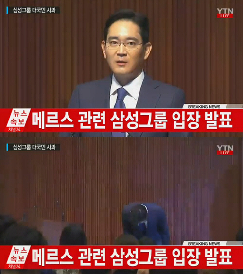 이재용 삼성전자 부회장이 23일 중동호흡기증후군(메르스) 사태와 관련해 직접 대국민 사과문을 공식 발표했다.